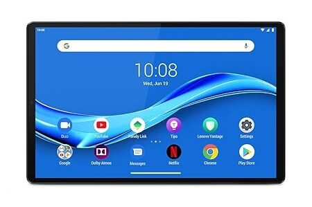 Refurbished Lenovo Tab P11 Plus with vibrant 11-inch 2K display and immersive sound powered by four JBL Hi-Fi speakers with Dolby Atmos.